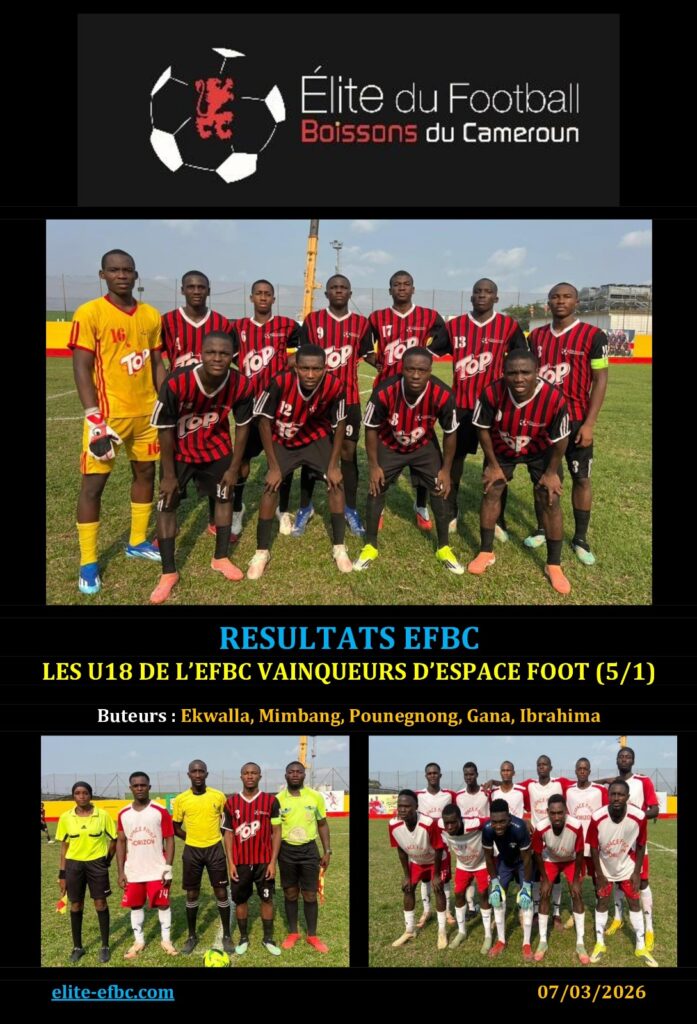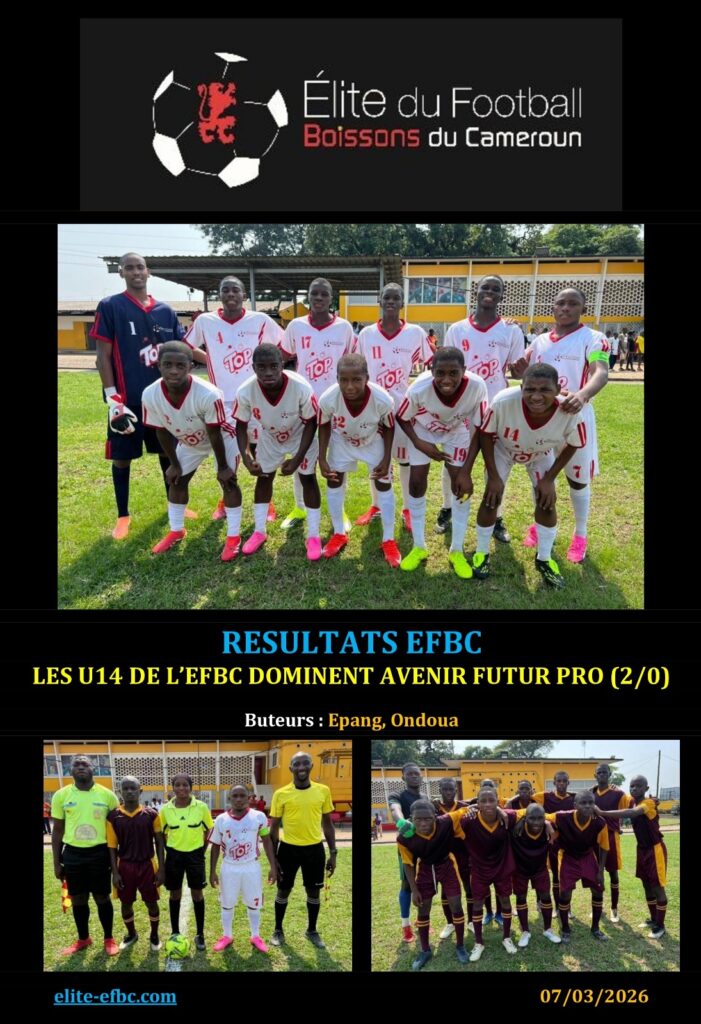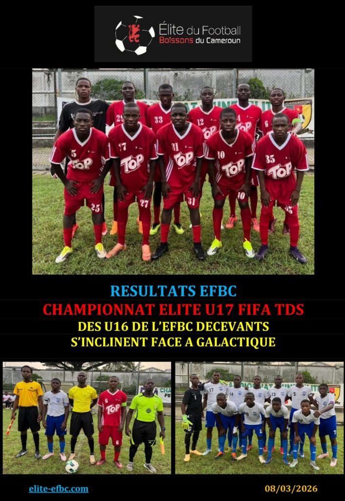 EFBC RESULTATS EFBC: CHAMPIONAT ELITE U17 FIFA TDS DES U16 DE L’EFBC DECEVANTS S’INCLINENT FACE A GALACTIQUE 8 mars 2026 7:15 pm