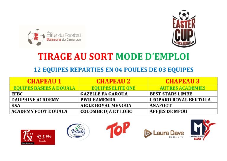 Le tirage au sort des 04 poules de la EASTER CUP PATRICIA BERTHELOT 2026 sera effectué le mercredi 04 mars en direct sur MSI TV par le Directeur Général de la chaîne M. Hervé MOUKOURY. L’émission LE CLUB qui est…