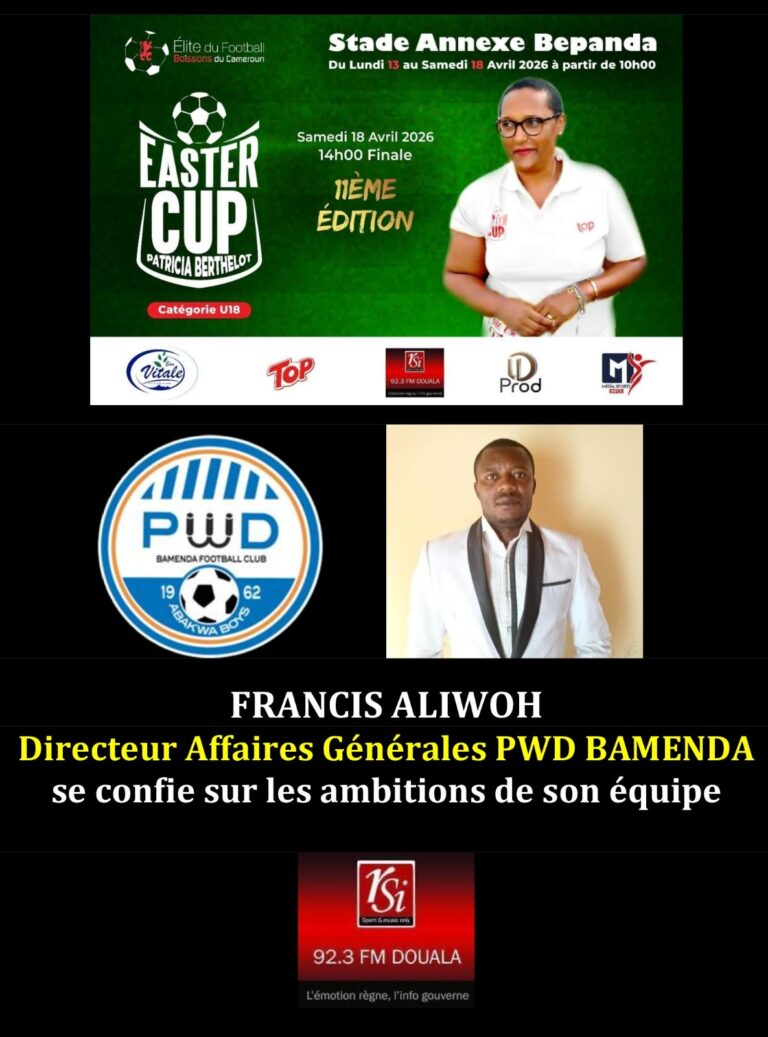 EASTER CUP PATRICIA BERTHELOT 2026FRANCIS ALIWOH: DIRECTEUR DES AFFAIRES GÉNÉRALES PWD BAMENDA SE CONFIE SUR LES AMBITIONS DE SON EQUIPECLIQUEZ POUR ECOUTEREFBC27 mars 2026