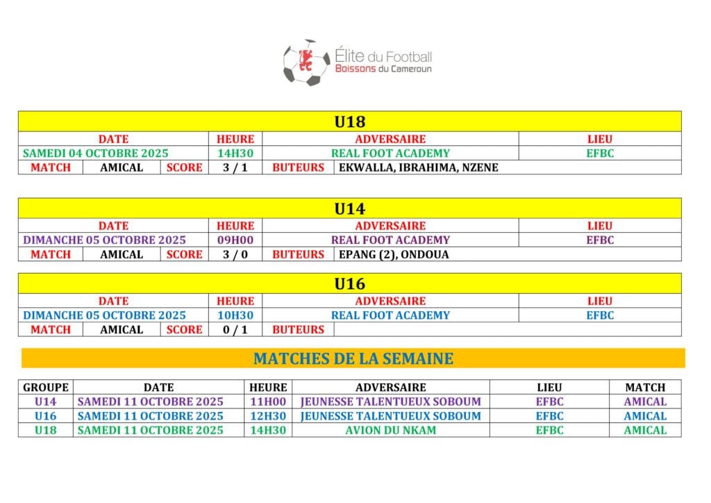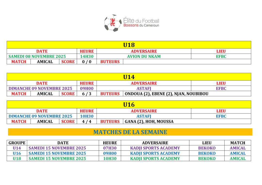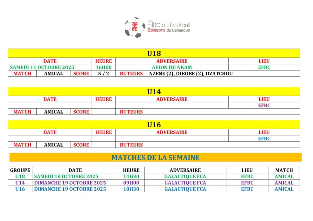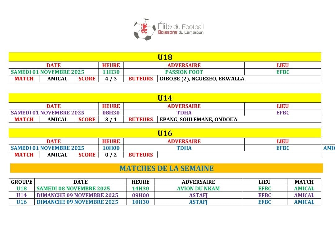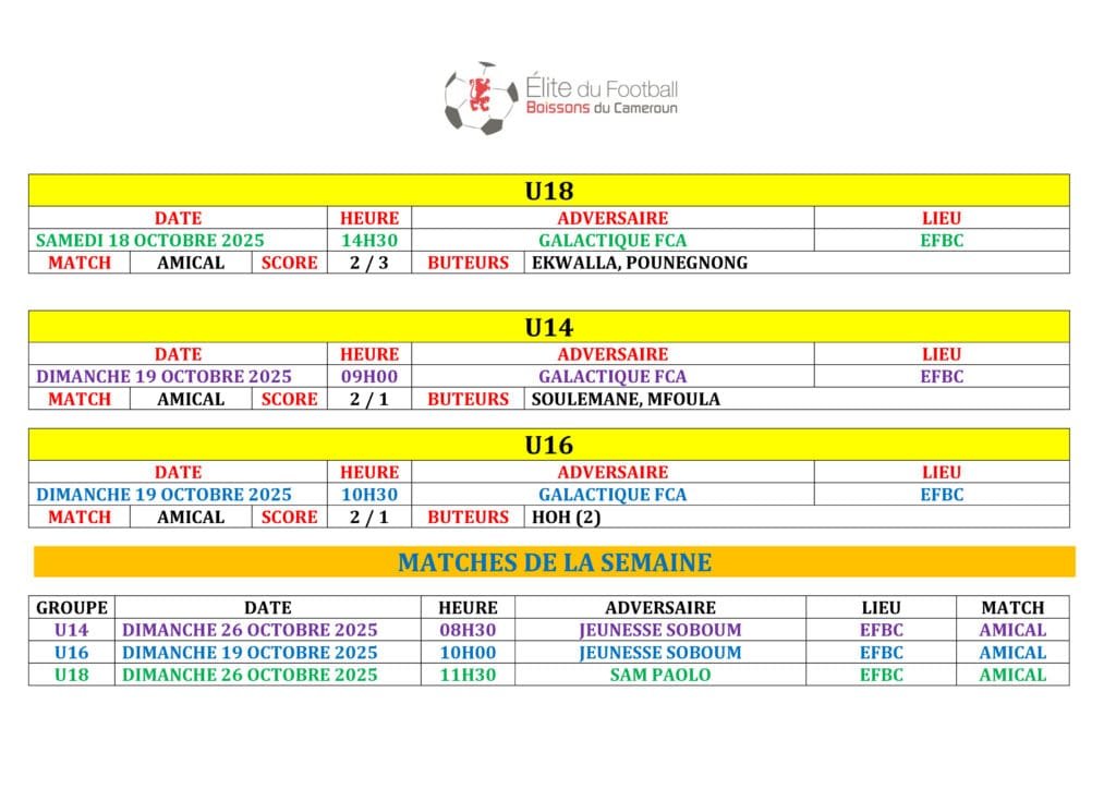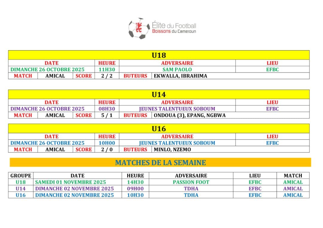 Ne manquez rien des prochains défis de l’EFBC ! Retrouvez tous les futurs matchs et résultats à venir dans notre Agenda. ⚽