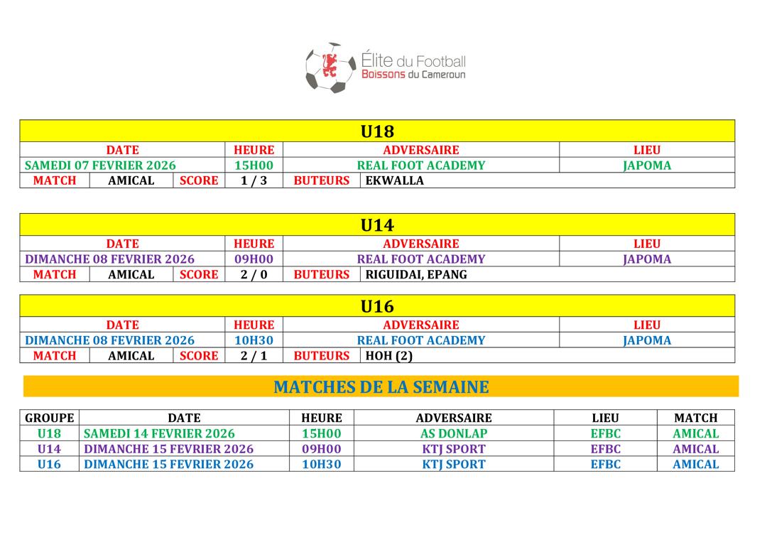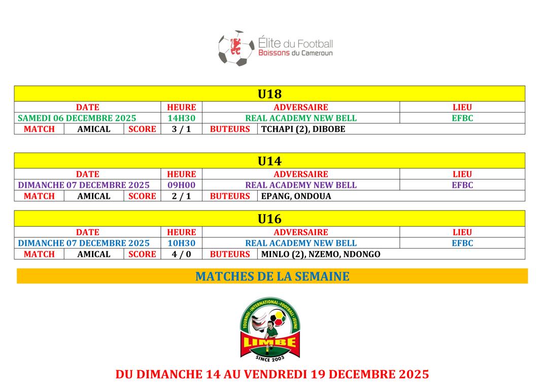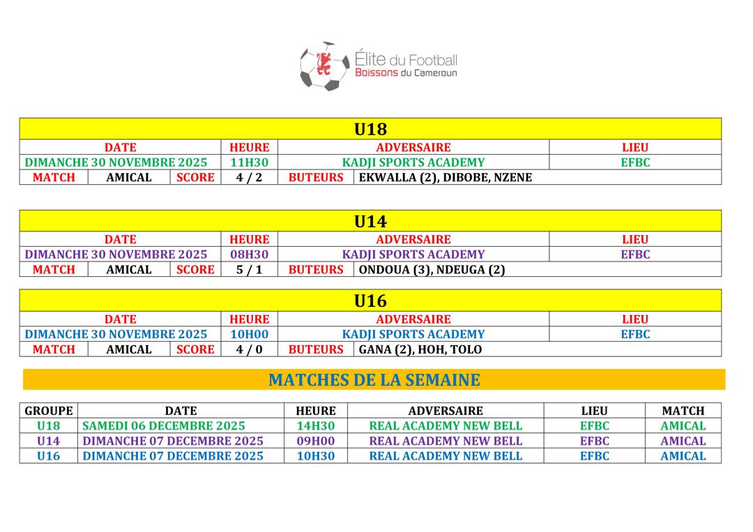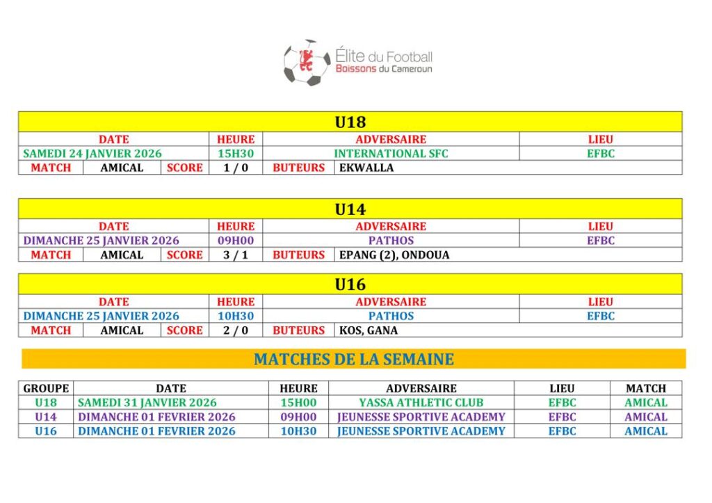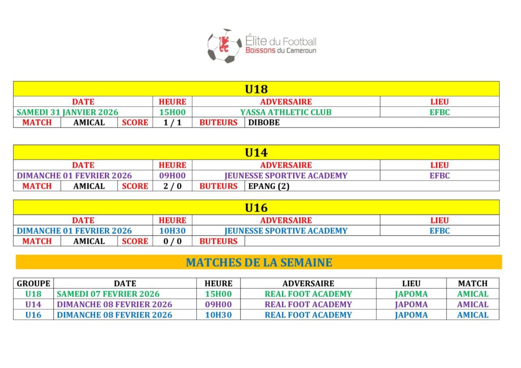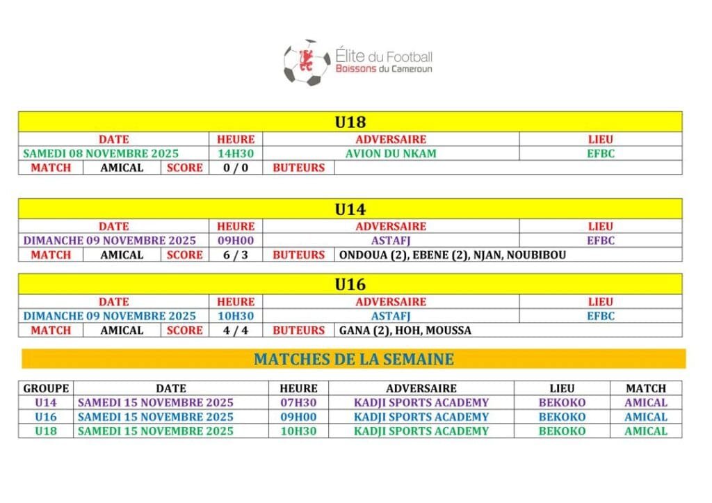 Ne manquez rien des prochains défis de l’EFBC ! Retrouvez tous les futurs matchs et résultats à venir dans notre Agenda. ⚽