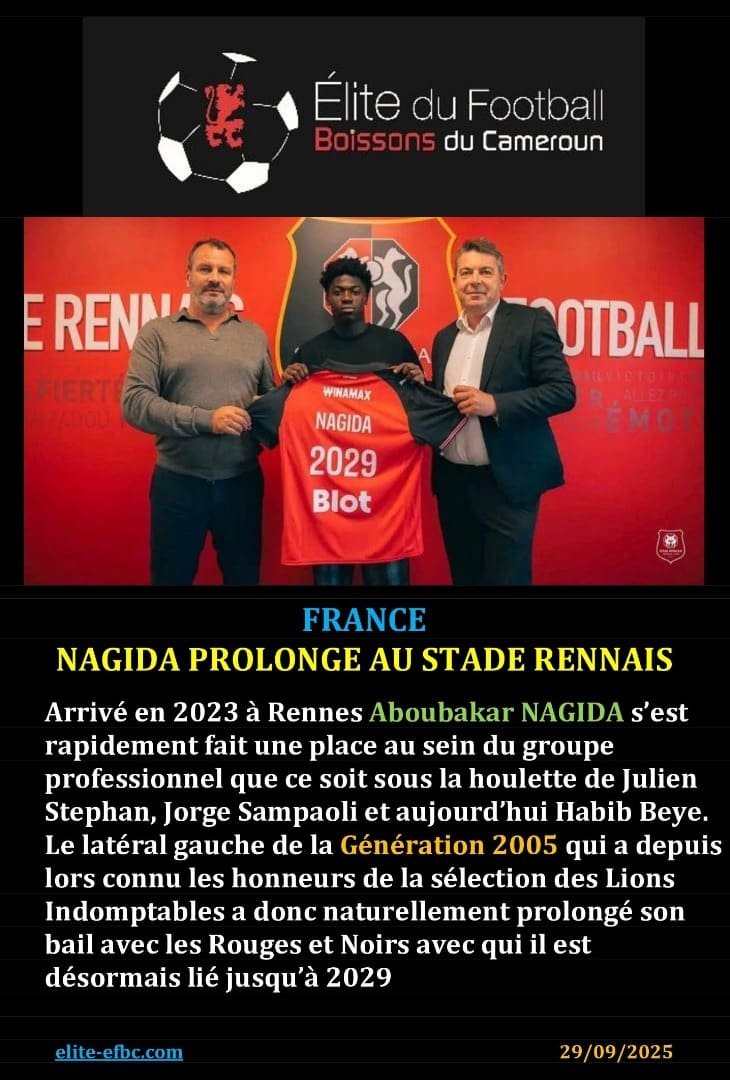 FRANCE: NAGIDA PROLONGE AU STADE RENNAIS