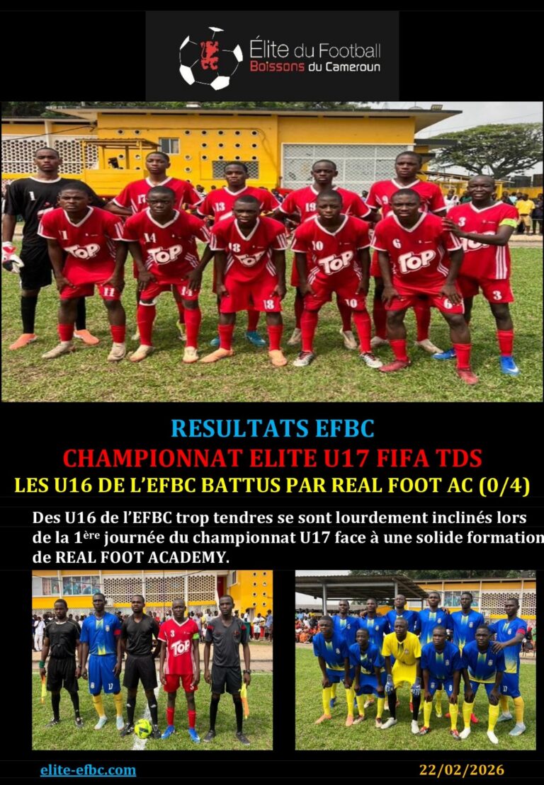 RESULTATS EFBC: CHAMPIONAT ELITE U17 FIFA TDS RELANCE LES U16 DE L’EFBC BATTUS FACE A DONLAP (1/0)
