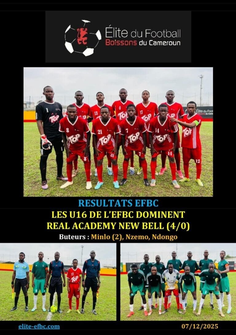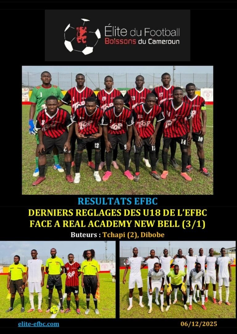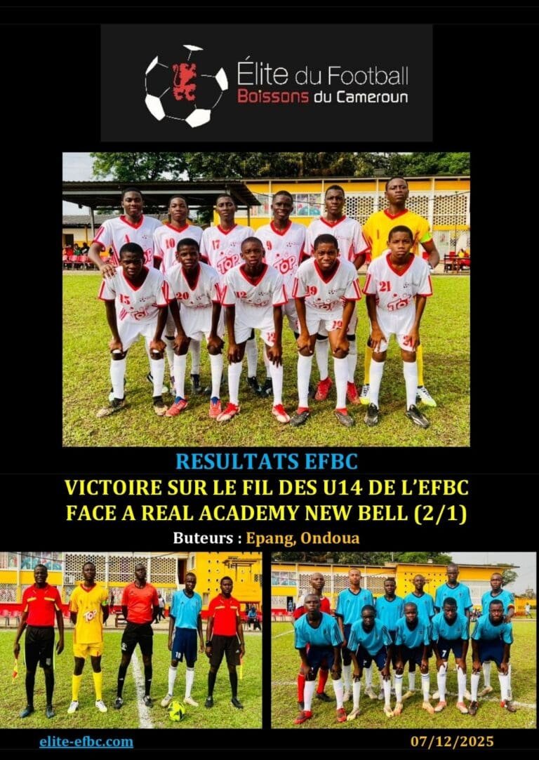 EFBCRESULTATS EFBC: VICTOIRE SUR LE FIL DES U14 DE L’EFBC FACE A REAL ACADEMY NEW BELL (2/1)EFBC8 décembre 2025