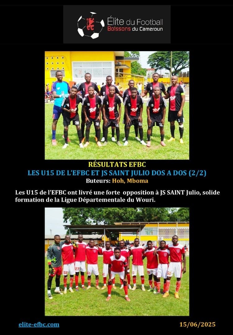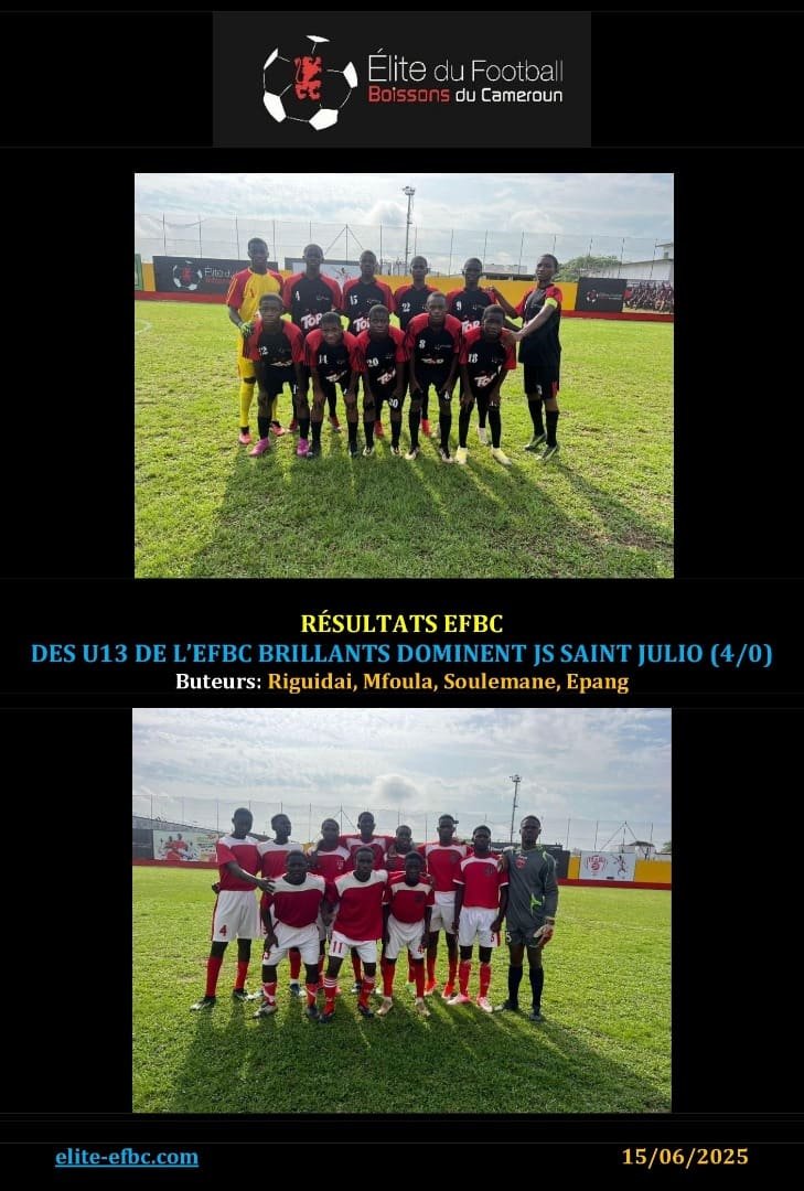 Résultats des matchs, WCFC 2025WCFC 2025: LES U15 DE L’EFBC DEBUTENT PAR UNE VICTOIRE SUR BEST TALENT SPORT ACADEMYEFBC24 juin 2025