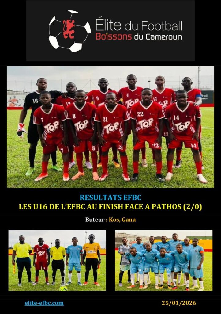 RESULTATS EFBC: LES U16 DE L’EFBC AU FINISH FACE A PATHOS(2/0)