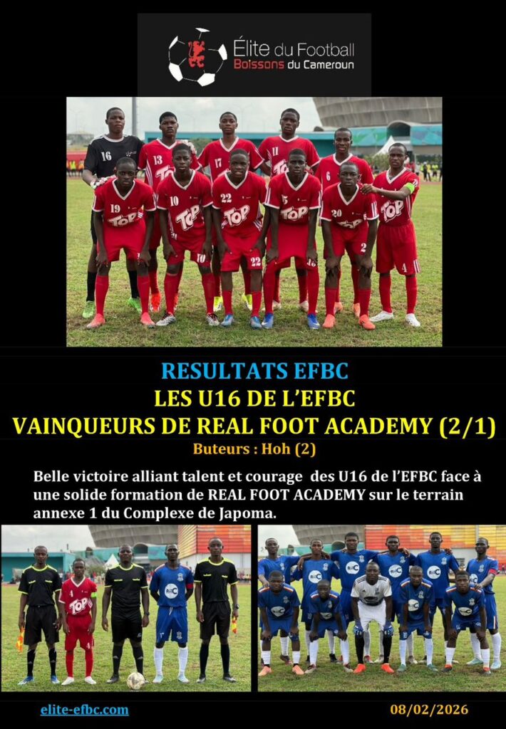 RESULTATS EFBC: LES U16 DE L’EFBC VAINQUEURS DE REAL FOOT ACADEMY (2/1)
