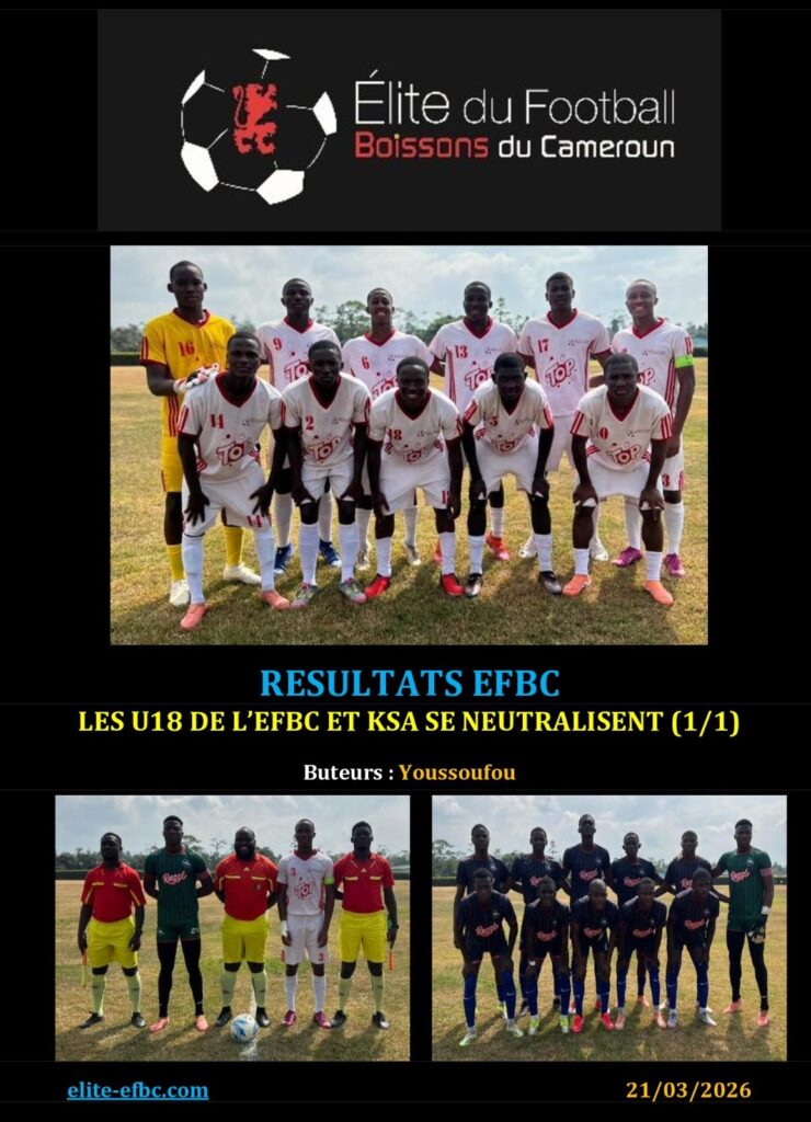 RESULTATS EFBC: LES U18 DE L’EFBC ET KSA SE NEUTRALISENT (1/1)
