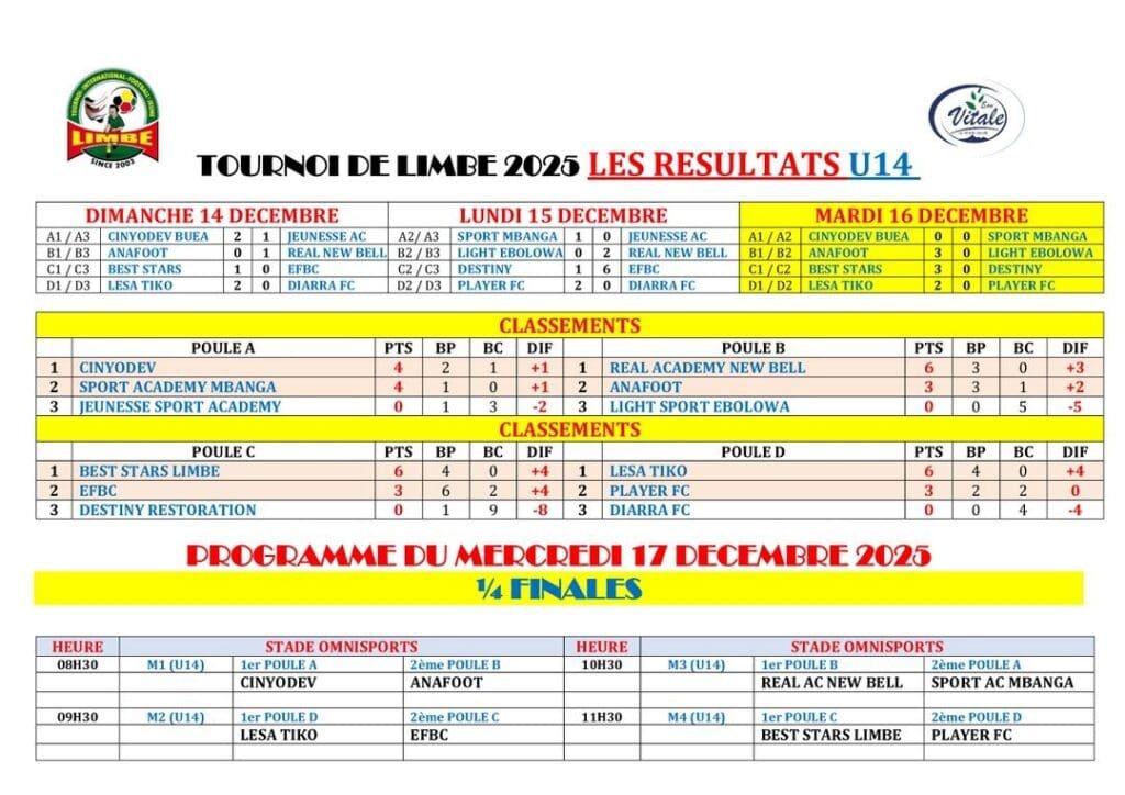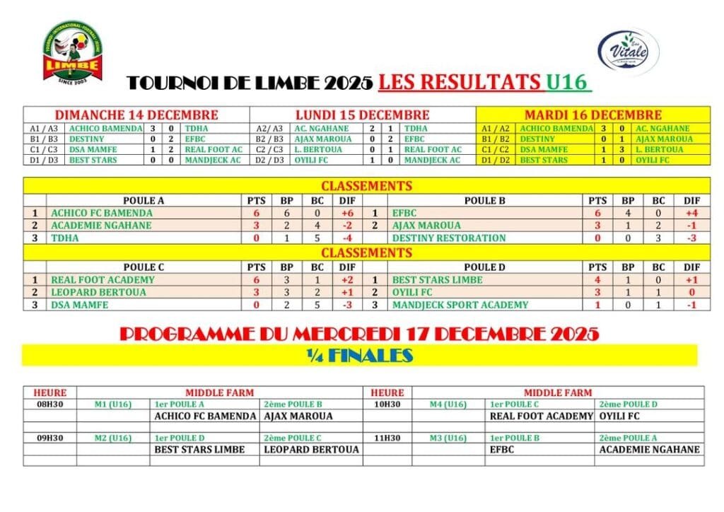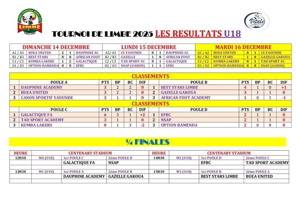 TOURNOI INTERNATIONAL DE LIMBE JOUR 3: FIN DES MATCHES DE POULES